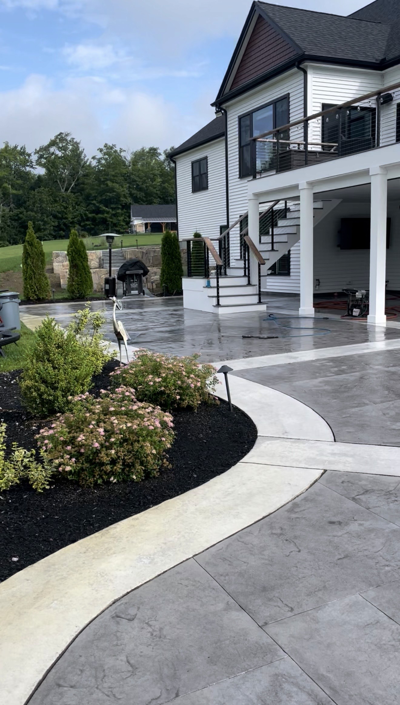 Full excavation, base prep, stamped concrete pour, and sealing completed. Clean finish that added immediate curb appeal and outdoor living space to the property.